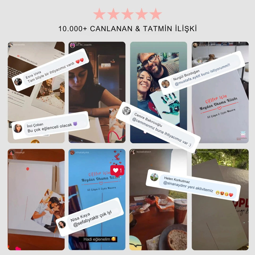 Günler birbirine benzemeye başladığında, hafta sonları plan yapmadan akıp gittiğinde bu kitap devreye girer. Sizi rutinden çıkaran, birlikte cesaret etmenizi sağlayan ve sıradan bir günü anlatacak bir hikâyeye dönüştüren meydan okumalar sunar. Çünkü yıllar sonra hatırlanan şeyler, rahat olduğunuz anlar değil; birlikte adım attığınız, güldüğünüz, cesaret ettiğiniz ve “iyi ki yapmışız” dediğiniz anlardır.